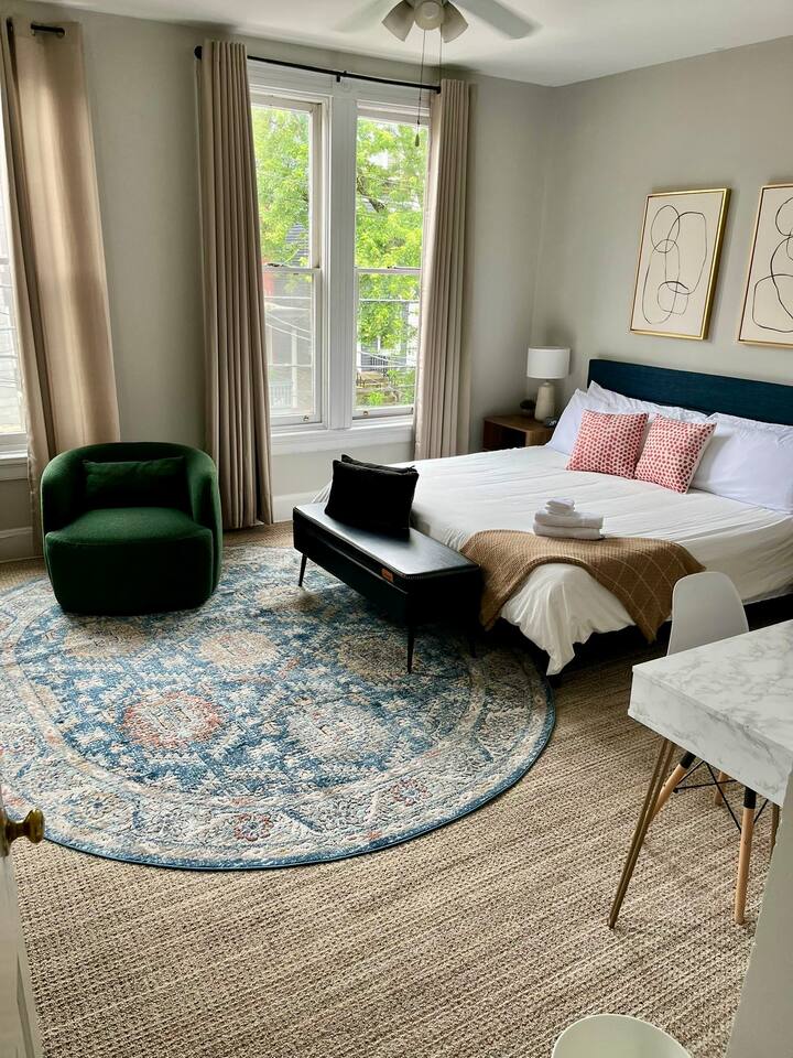 KEY FEATURES: ☀️ Charming + fully equipped 2 bedroom w/ open concept living areas ☀️ 2 comfortable sleeper sofas, 1 king, 2 full beds ☀️ 1 full bathroom w/tub + shower + bidet ☀️ Brand new furnished deck w/ comfortable seating ☀️ High-speed wifi + 4 Smart TVs in living areas + bedrooms ☀️ Full kitchen w/ appliances + cooking necessities Here Are A Few Kind Words From Our Past Guests: "This apartment had everything we needed, including a nice balcony, great decor, comfortable furniture, and coffee with cream! I would recommend this place to anyone staying in Cincinnati. Another plus was that it was quiet and felt very safe in this neighborhood." "We really enjoyed our stay and loved the area surrounding the property. From the bars to the coffee shops, it was a great area to be in!" "Lovely cozy spot! Very comfortable beds. Convenient location. Responsive, proactive, friendly host." LIVING ROOM 1 (Lower Level) * Open concept space that comfortably seats 6ppl * Convertible sleeper sofa (full size) * Comfortable armchair w/ side table * Board games and card games * 50in Roku Smart TV w/ viewing apps KITCHEN * Stainless steel appliances: electric stove, microwave, fridge, dishwasher * Keurig coffee machine * Complimentary assortment of coffees and teas * Toaster * Hot water kettle * Pots + pans + bakeware * Cutlery + silverware * Dishes, plates, drinking glasses, mugs * Kids' plates + bowls + silverware BEDROOM 1 (Lower Level) * King sized mattress; 12in thickness * 4 large windows w/ room darkening curtains * End tables w/ lamps + USB ports * White noise machine * Dedicated workspace w/ desk, chair + desk lamp * Spacious closet for clothes storage * Large + mounted wall mirror * Ceiling fan BATHROOM * Spacious shower w/ rainfall shower head * Body wash, shampoo + conditioner * Makeup towels + bath towels * Hair dryer * Bidet toilet system LIVING ROOM 2 (Upper Level) * Open concept space that comfortably seats 6ppl * Convertible sectional sleeper sofa (full size) * Comfortable armchair * Board games and card games * 50in Roku Smart TV w/ viewing apps * Record player station with seating and records selection * Dedicated workspace w/ desk, chair + desk lamp BEDROOM 2 * 2 full sized 12in thick beds * 2 large windows w/ room darkening curtains * End table w/ lamp * Reading nook w/ bench * Spacious closet for clothes storage w/ luggage rack, clothes organizer * Large + mounted wall mirror * Iron, ironing board, clothes hamper * Ceiling fan