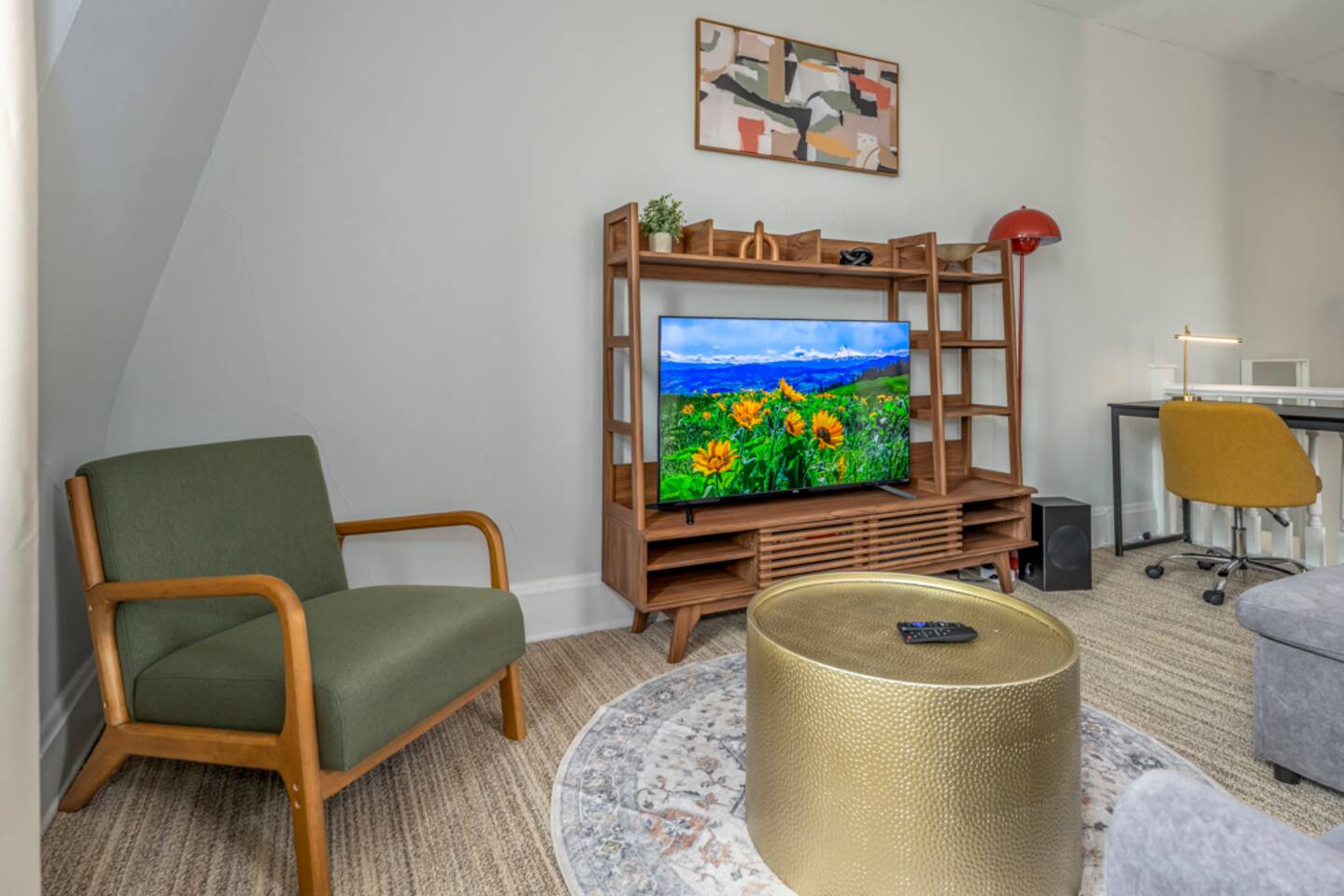 Historic charm meets modern comfort in the heart of Mt. Adams! Built in 1880, this bright and spacious home features 2 cozy living areas, 4 smart TVs, a spacious deck with seating, and a king suite w/ dedicated workspace. It offers the perfect retreat for guests looking to explore or unplug, relax and connect with loved ones. - Mins to OTR, Paul Brown, Great American Ball Park + TQL Stadium - Walk to the Art Museum, Eden Park, Playhouse in the Park - Short walk to top restaurants + bars