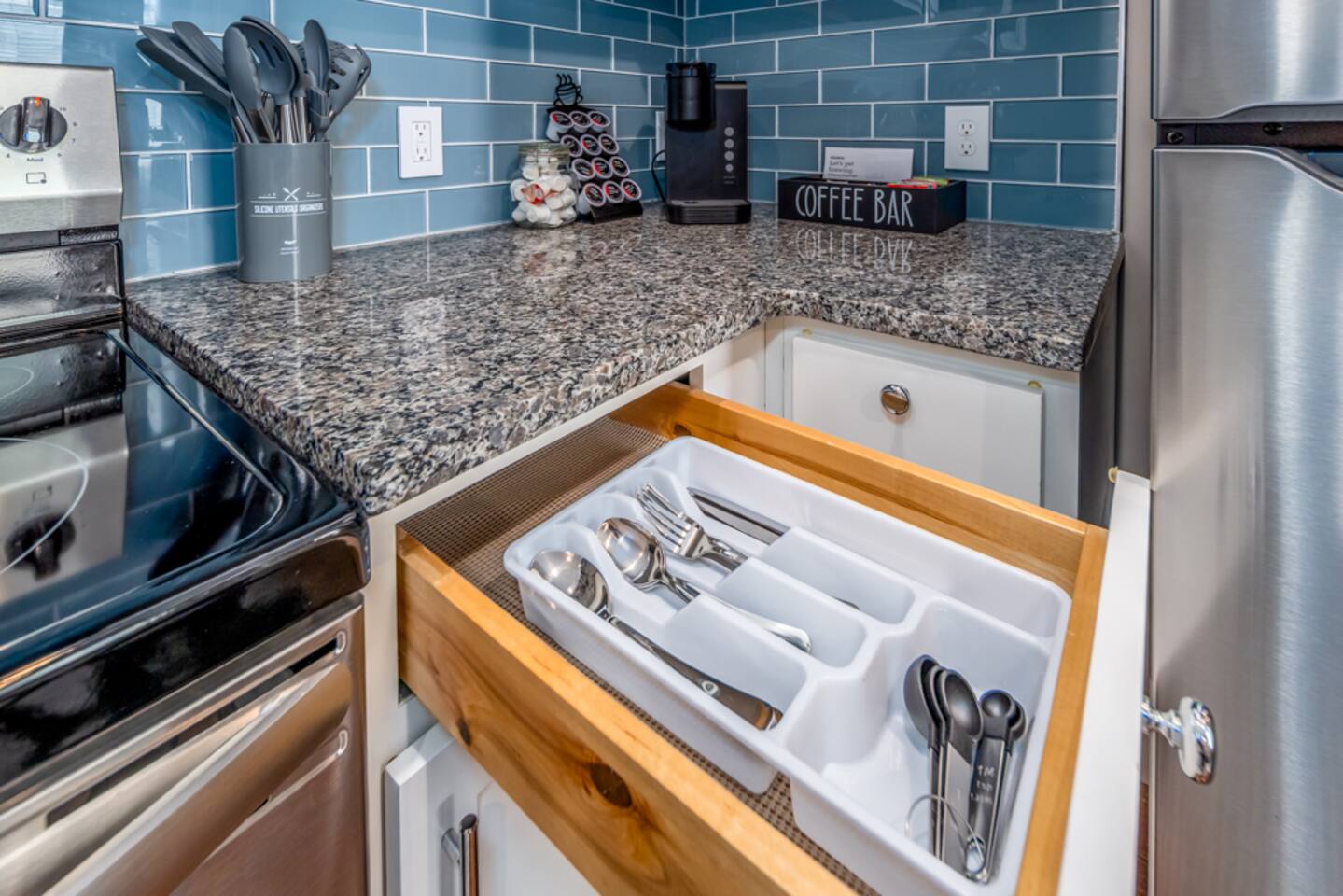 HEADS UP: Our unit is in the heart of Cincinnati’s lively OTR district, right next to a popular bar. You may hear some noise, especially on weekends. We provide a white noise machine and earplugs for your comfort. KEY FEATURES: ☀️ New condo w/ open concept living area ☀️ 1 comfortable, spacious bedroom; 2 queens ☀️ Child friendly space w/ folding highchair and pack n' play crib (available upon request). ☀️ 1 full bathroom w/shower, toilet, vanity ☀️ In-unit washer + dryer ☀️ Full kitchen w/ stainless steel appliances + cooking necessities ☀️ Cozy living room w/ 50in Roku Smart TV ☀️ Dining seating for two people at the island Here Are A Few Kind Words From Our Past Guests: "It was amazing and we both had a great time. The space was perfectly comfortable and the hosts were so welcoming and communicative. If we ever come back to Cincinnati, we know where to stay." "I'd give this place a 236 out of 10. The location alone was premium. the bed was heaven. Totally pleased with everything in the apartment!! They have 3 hosts and they work together fantastically!! Responsive, well coordinated, and professional." "This apartment was perfect for a visit to Cincinnati and the Over-the-Rhine district. Nina was a great hose and would definitely stay at this apartment again!" LIVING ROOM * Open concept that comfortably seats 4 people * 3-person sofabed (full size) * Comfortable ottoman * Round coffee table * 50in Roku Smart TV with apps * TV cabinet w/storage + playing cards KITCHEN * Granite countertops * Stainless steel appliances: electric stove, microwave, fridge, dishwasher * Keurig coffee machine * Complimentary assortment of coffees and teas * Toaster * Pots + pans + bakeware * Cutlery + silverware * Plates + bowls * Drinking glasses + mugs * Stools for seating at the island for two people BEDROOM * 2 Queen sized beds; 12in thickness + tea memory foam * 43in Roku Smart TV * Dedicated workspace w/ desk, lamp + ottoman chair * 2 large windows w/ blackout curtains + wooden blinds * Full body mirror * White noise machine + alarm clock * Wardrobe for clothing storage + hangers * Laundry area w/ washer + dryer, ironing board * Luggage rack (under the bed) BATHROOM * Spacious shower w/ detachable wand * Body wash, shampoo + conditioner * Makeup towels + bath towels