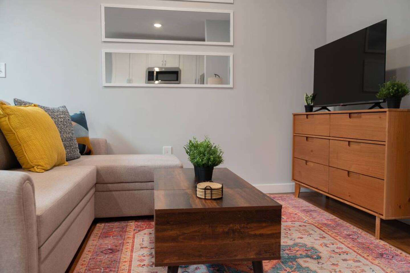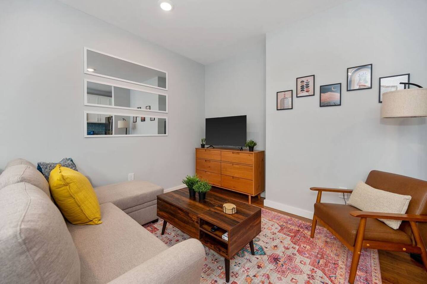 HEADS UP: Our unit is in the heart of Cincinnati’s lively OTR district, right next to a popular bar. You may hear some noise, especially on weekends. We provide white noise machines and earplugs for your comfort. KEY FEATURES: ☀️ Brand new condo w/ open concept living area ☀️ 1 comfortable, spacious bedroom; 1 full ☀️ Child friendly space w/ folding high chair and pack n' play crib (available upon request). ☀️ 1 full bathroom ☀️ In-unit washer + dryer ☀️ Full kitchen w/ stainless steel appliances + cooking necessities ☀️ Cozy living room w/ 50in Vizio 4K Smart TV ☀️ 2 Dining seating areas: at the kitchen island and at drop leaf table Here Are A Few Kind Words From Our Past Guests: "Excellent stay. Super clean space, directions were clear. Very happy I stayed here!" "If you’re looking for a place to stay in Cincinnati I’d 100% recommend this place. Nina is AMAZING and so is the place!" "The unit is exactly as advertised. Unlike many other comparable listings, this unit is actually located within OTR and super walkable to all things OTR and downtown (approx 20 min walk to GABP). It was super clean and Nina proved a great host. She was friendly and ultra responsive the lone time I contacted her with a question. Book with confidence." LIVING ROOM * Open concept that comfortably seats 4 people * Full sized sectional sofabed * Comfortable armchair * Lift coffee table for workspace + storage * 43in Vizio 4K Smart TV with apps * Multi-device charger KITCHEN * Granite countertops * Stainless steel appliances: electric stove, microwave, fridge, dishwasher * Keurig coffee machine * Complimentary assortment of coffees and teas * Toaster * Pots + pans + bakeware * Cutlery + silverware * Wheat straw plates + bowls * Drinking glasses + mugs * Stools for seating at the island for two people BEDROOM * Full sized mattress; 12in thickness + tea memory foam * 3 large windows w/ room darkening curtains * Floor mirror * White noise machine + alarm clock * Hair dryer, iron, ironing board, steamer + luggage rack * Dedicated workspace w/ desk, lamp, chair + stationary BATHROOM * Spacious shower w/ detachable wand * Body wash, shampoo + conditioner * Makeup towels + bath towels